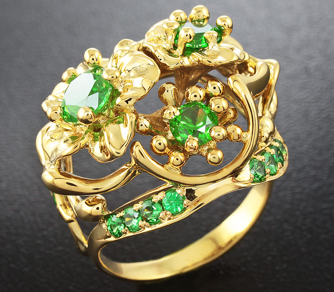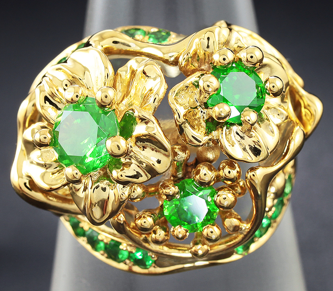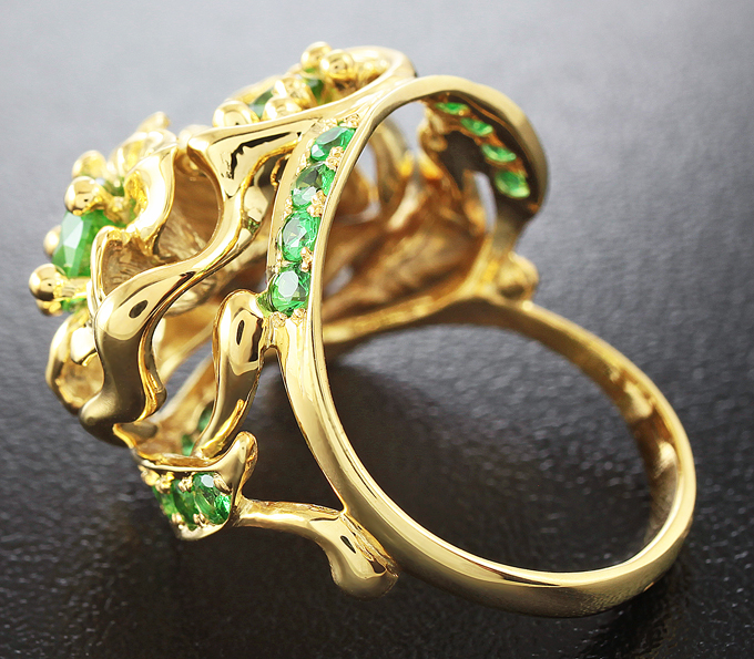 Кольцо с уральскими демантоидами и цаворитами гранатами