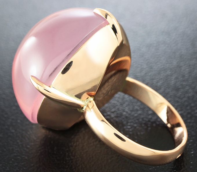 Кольцо с крупным розовым кварцем с «кошачьим глазом»