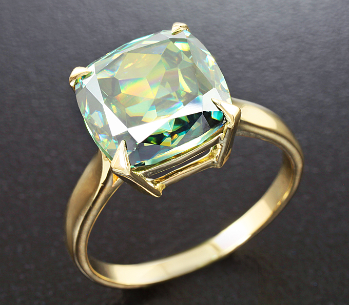 Вашему вниманию предлагается кольцо из желтого золота 585 пробы c муассанитом! Площадка 11 х 11 мм, высота 9 мм. Вес изделия 4,5 г. Размер 19. Ниже приводятся ювелирные характеристики вставки.