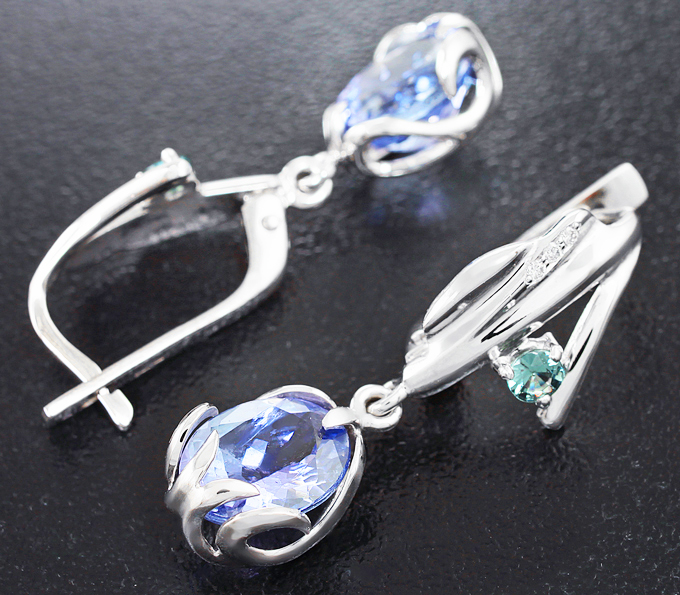 Серьги с танзанитами, гранатами со сменой цвета и бриллиантами