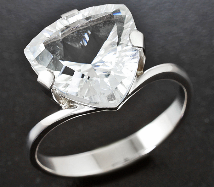 Вашему вниманию предлагается кольцо из белого золота 585 пробы с бесцветным кварцем! Размеры вставок 12 х 12 мм. Площадка 13 х 13 мм, высота 7 мм. Вес изделия 4,3 г. Размер 19. Ниже приводятся ювелирные характеристики вставки.