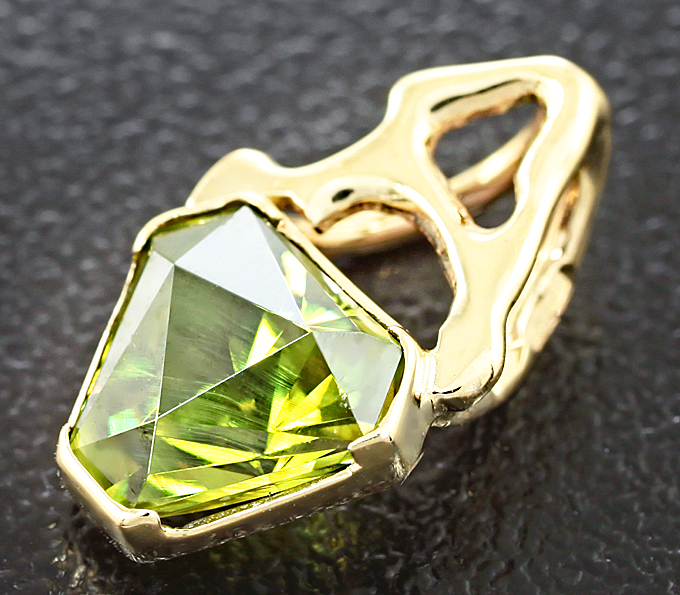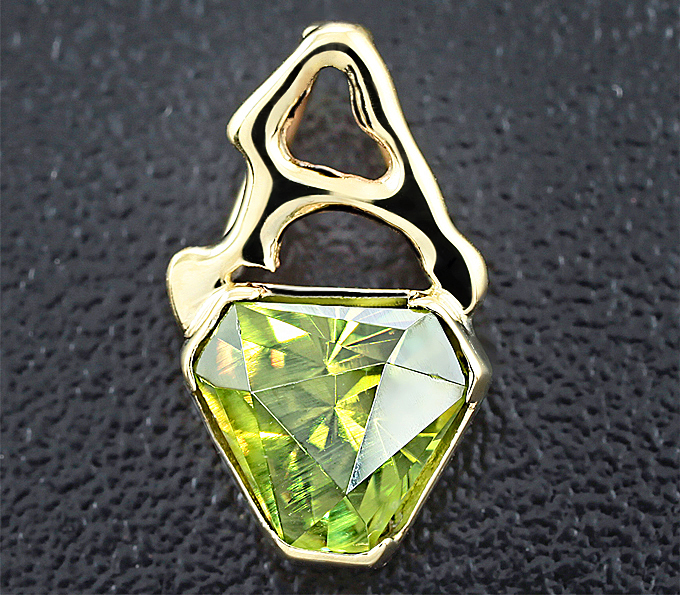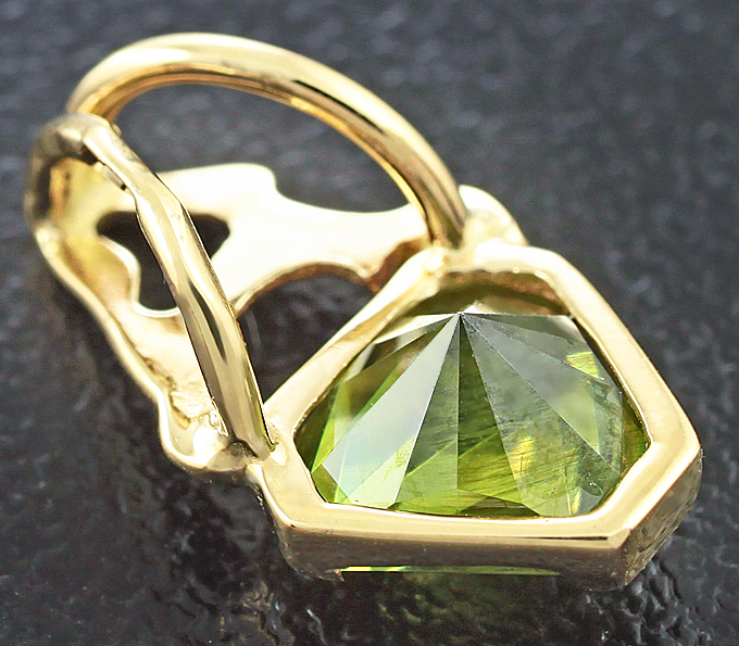 Вашему вниманию предлагается кулон из желтого золота 585 пробы с уральским демантоидом авторской огранки! Размеры вставок мм. Размеры кулона с петлей 14 х 8 мм. Вес 0,8 г. Ниже приводятся ювелирные характеристики вставки.