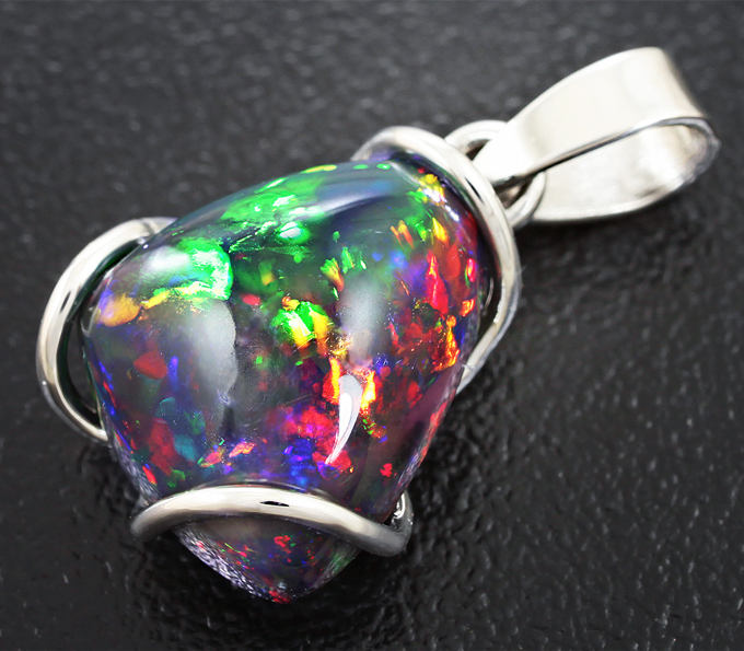 Кулон с кристаллическим черным опалом
