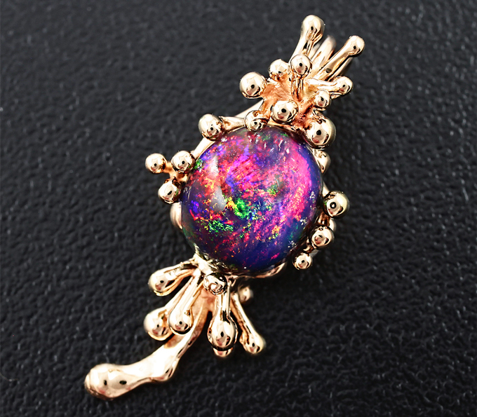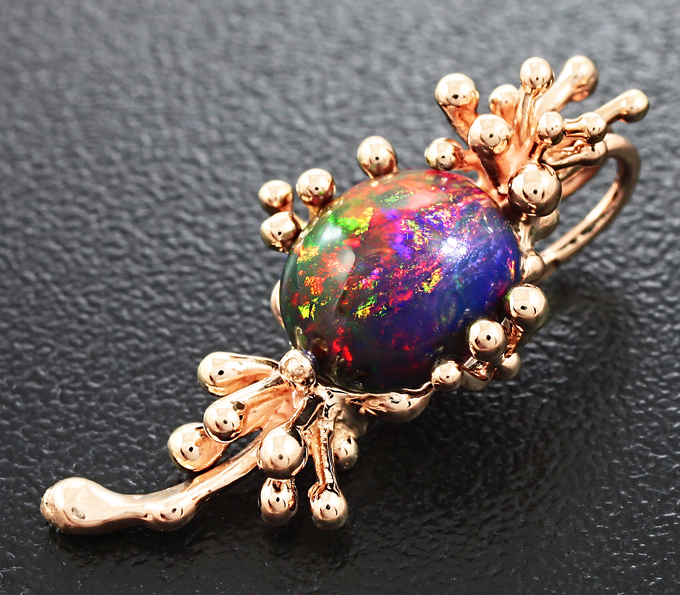 Вашему вниманию предлагается кулон из розового золота 585 пробы с кристаллическим черным опалом массой 1,64 карат! Основные цвета опалесценции: красный, желтый и зеленый. Размеры вставок 9 мм. Площадка кулона 27 х 12 мм. Вес 2,6 г.