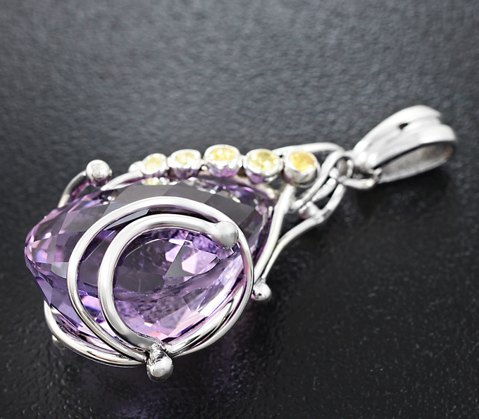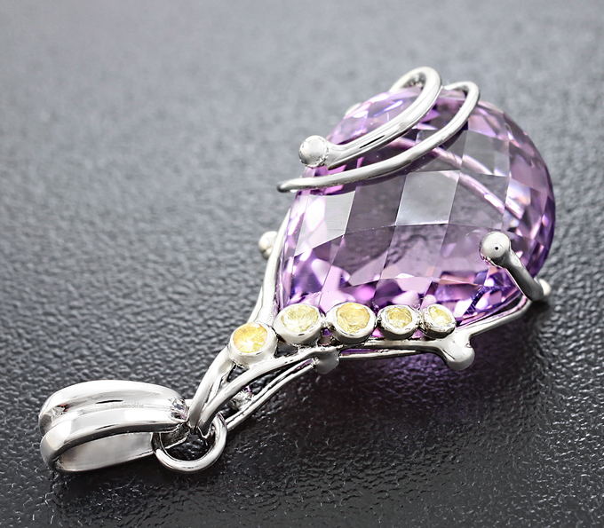 Кулон с чистейшим аметистом и желтыми сапфирами