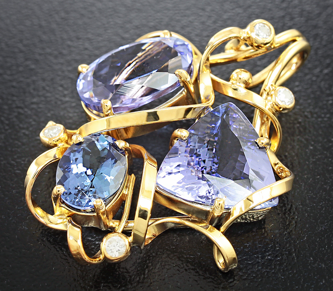 Кулон с танзанитами и бесцветными цирконами