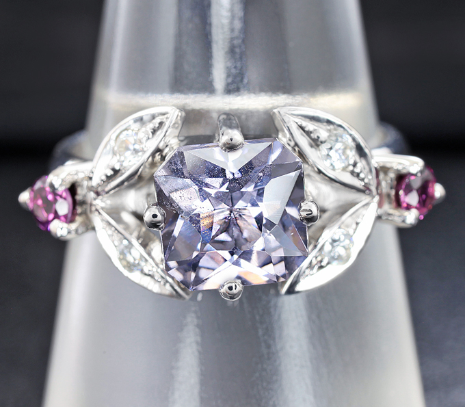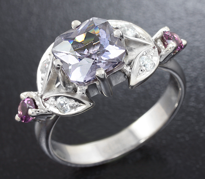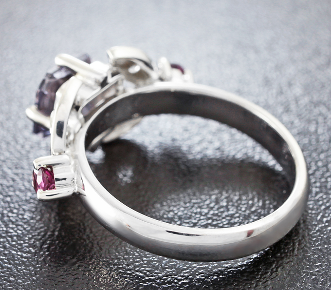 Кольцо c кобальтовой шпинелью, родолитами гранатами и лейкосапфирами