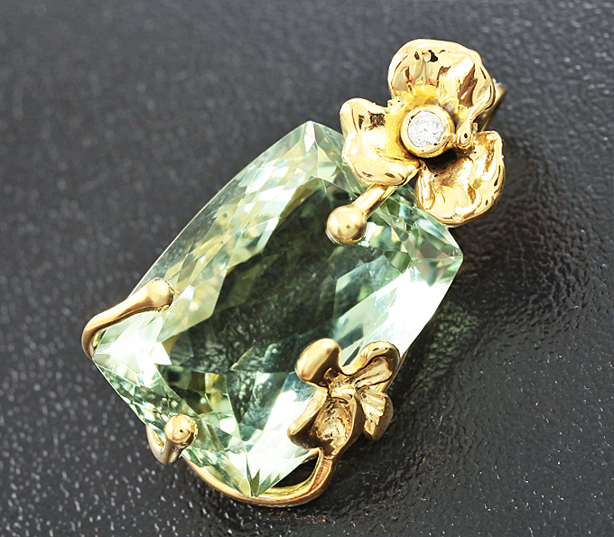 Вашему вниманию предлагается кулон из стерлингового серебра (925 проба) с чистейшим празиолитом и лейкосапфиром! Изделие позолочено. Диаметр сапфира 2 мм. Площадка кулона 28 х 16 мм. Вес 6 г. Ниже приводятся ювелирные характеристики аметиста.