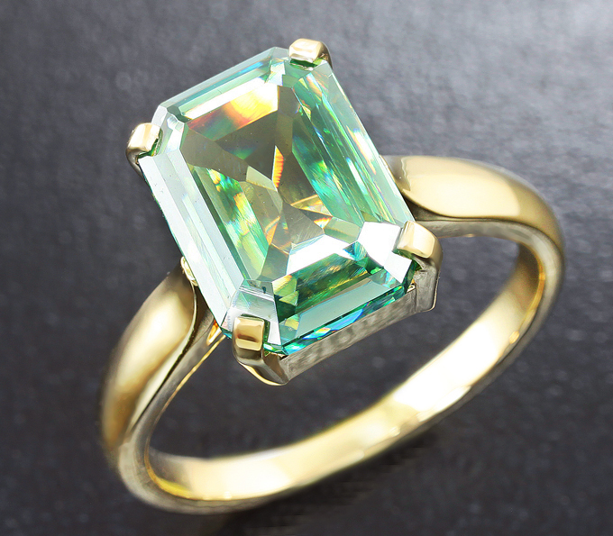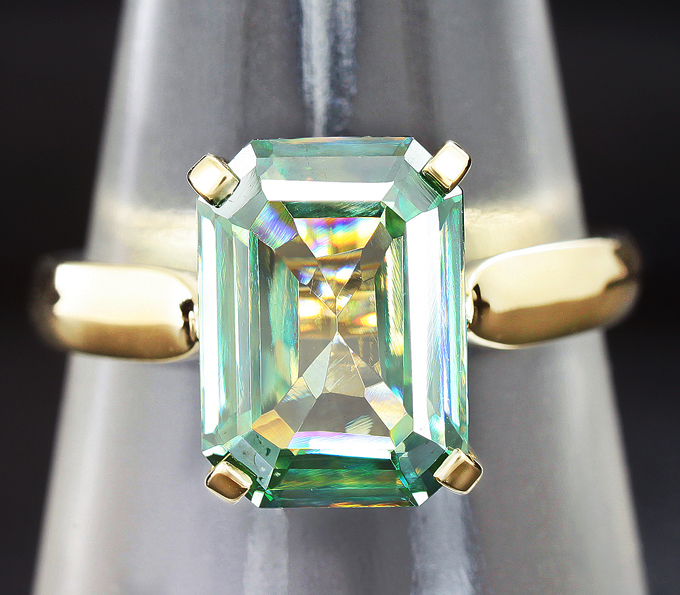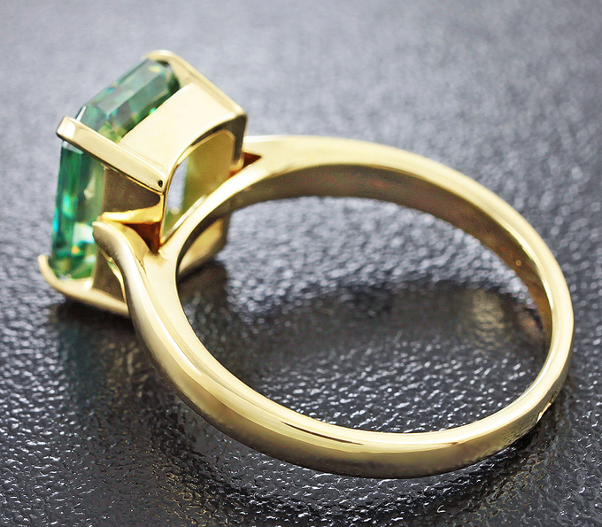 Вашему вниманию предлагается кольцо из желтого золота 585 пробы c муассанитом! Площадка 11 х 8 мм, высота 7 мм. Вес изделия 4,2 г. Размер 17,5. Ниже приводятся ювелирные характеристики вставки.