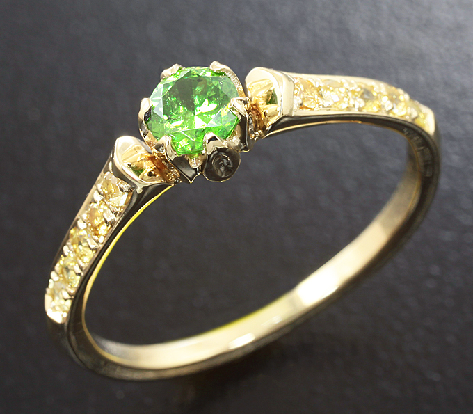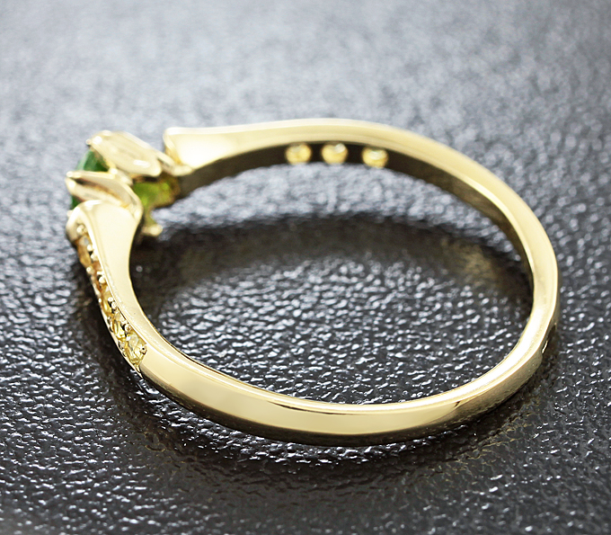 Кольцо с уральским демантоидом и сапфирами