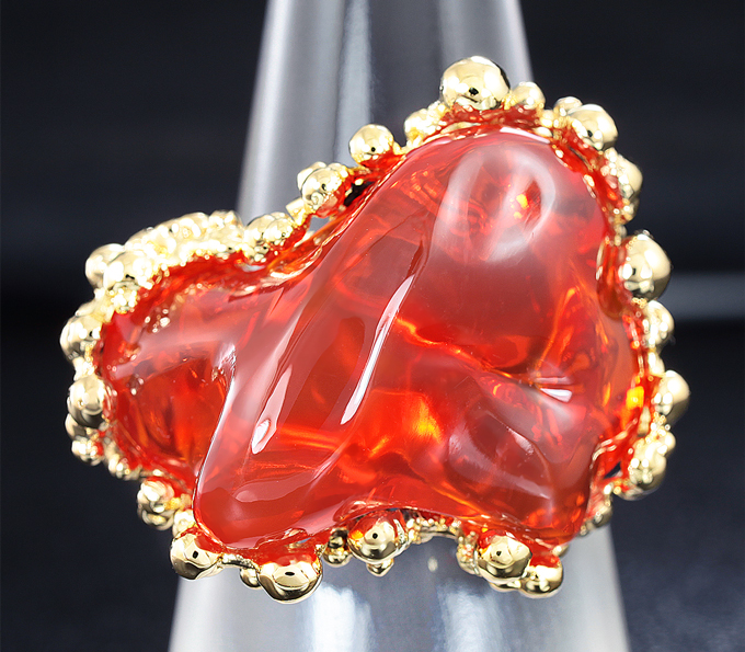 Вашему вниманию предлагается кольцо из желтого золота 750 пробы с мексиканским огненным опалом! Площадка 22 х 19 мм, высота 11 мм. Вес изделия 15,1 г. Размер 17,75. Ниже приводятся ювелирные характеристики вставки.