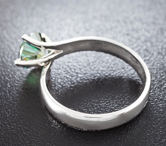 Вашему вниманию предлагается кольцо из белого золота 585 пробы с муассанитом! Ширина площадки 9 мм, высота 7 мм. Вес изделия 3,4 г. Размер 18. Ниже приводятся ювелирные характеристики вставки.