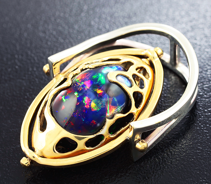 Кольцо-кулон с кристаллическим черным опалом 6 карат
