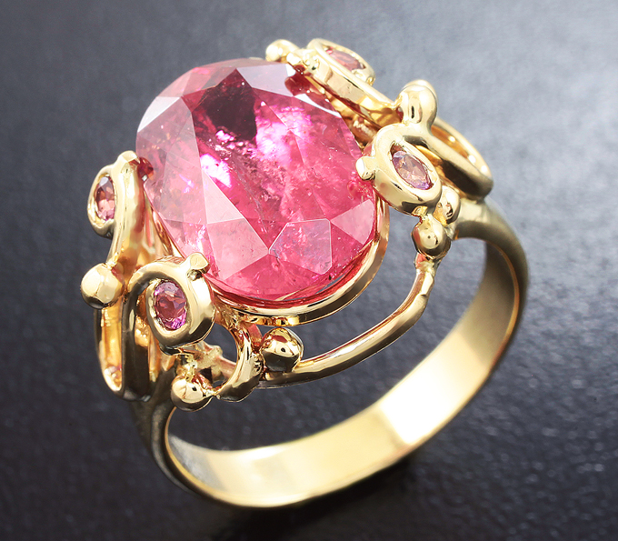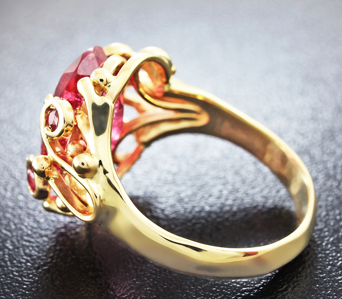 Вашему вниманию предлагается кольцо из желтого золота 585 пробы с афганским рубеллитом! Площадка 18 х 17 мм, высота 6 мм. Вес изделия 6,6 г. Размер 18. Ниже приводятся ювелирные характеристики вставки.