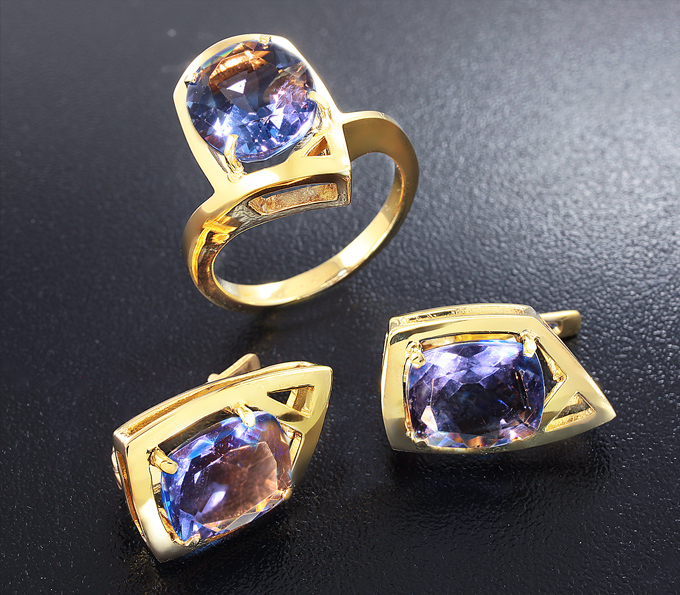 Вашему вниманию предлагается комплект (кольцо + серьги) из стерлингового серебра (925 проба) с флюоритами! Изделия позолочены. Вес комплекта 13,1 г.