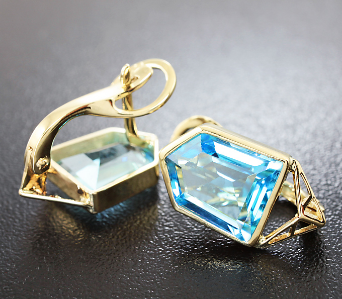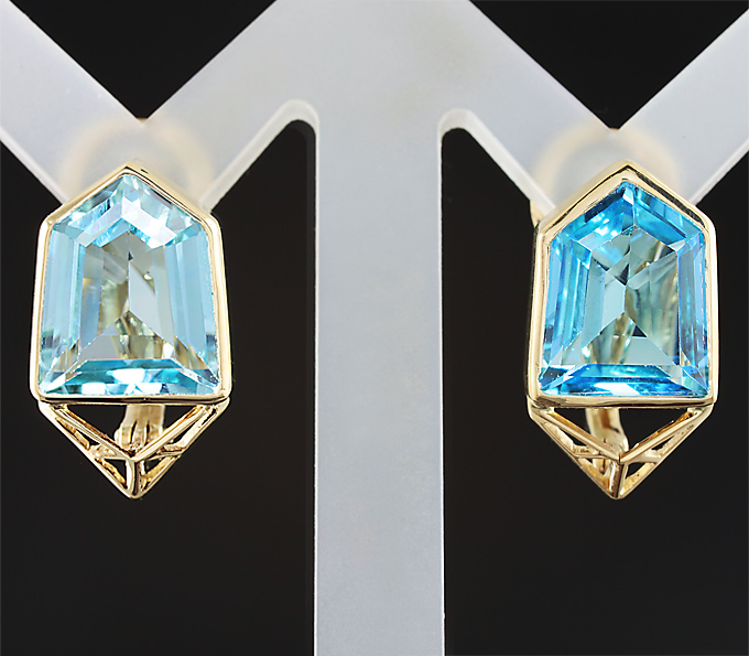 Вашему вниманию предлагаются серьги из желтого золота 585 пробы с топазами авторской огранки! Площадка серег 20 х 11 мм. Вес пары 5,8 г. Ниже приводятся ювелирные характеристики вставок.