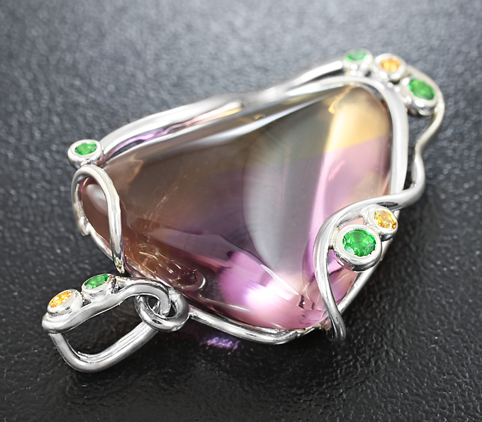 Кулон с кабошоном аметрина, сапфирами и цаворитами