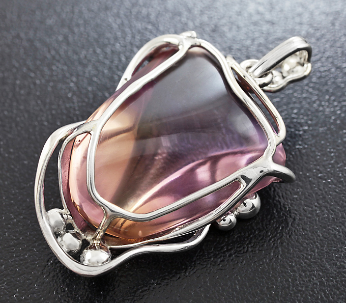 Вашему вниманию предлагается кулон из стерлингового серебра (925 проба) с кабошоном аметрина, сапфирами и цаворитами! Размер дополнительной инкрустации 2 и 2,5 мм. Размеры кулона с петлей 40 х 25 мм. Вес изделия 10,2 г. Ниже приводятся ювелирные характеристики вставки.