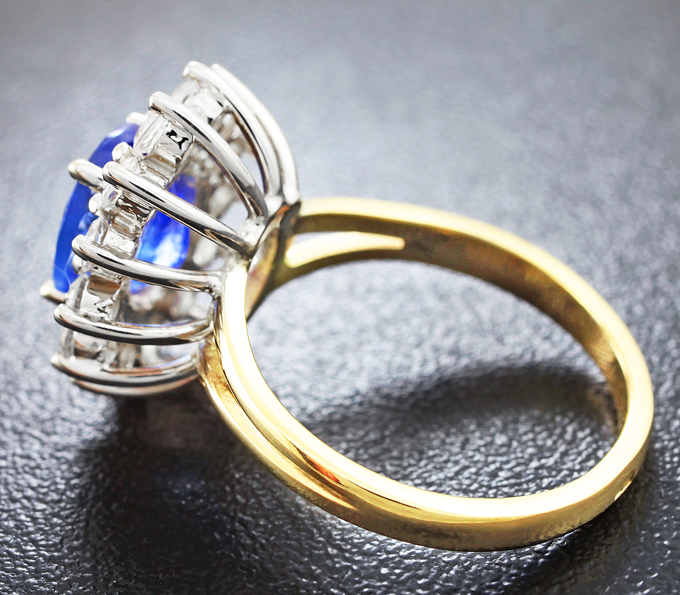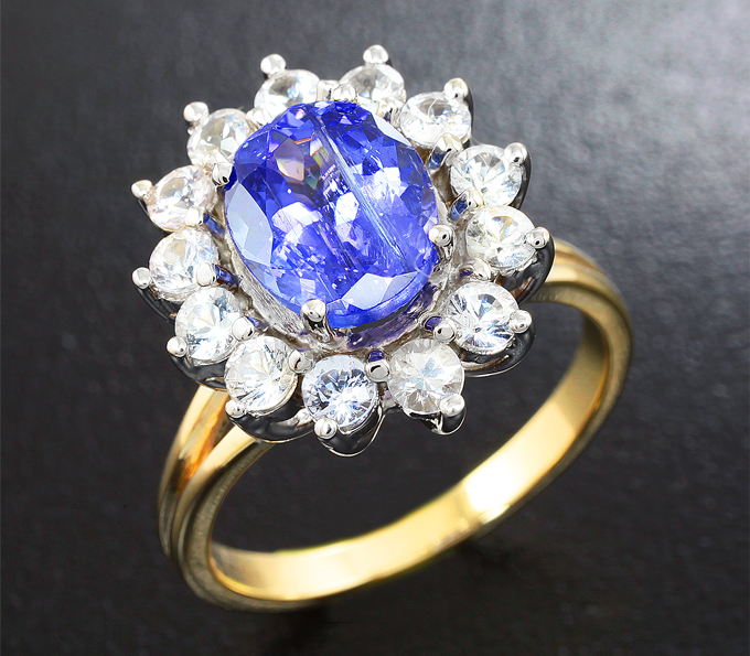 Вашему вниманию предлагается кольцо из желтого и белого золота 585 пробы с танзанитом массой 2,39 карат и лейкосапфирами! Диаметр дополнительной инкрустации 2,5 мм. Площадка 16 х 14 мм, высота 9 мм. Вес изделия 5,1 г. Размер 17. Ниже приводятся ювелирные характеристики вставки.