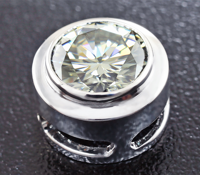 Вашему вниманию предлагается кулон из белого золота 585 пробы с муассанитом! Диаметр кулона 12 мм. Вес изделия 3,1 г. Ниже приводятся ювелирные характеристики вставки.