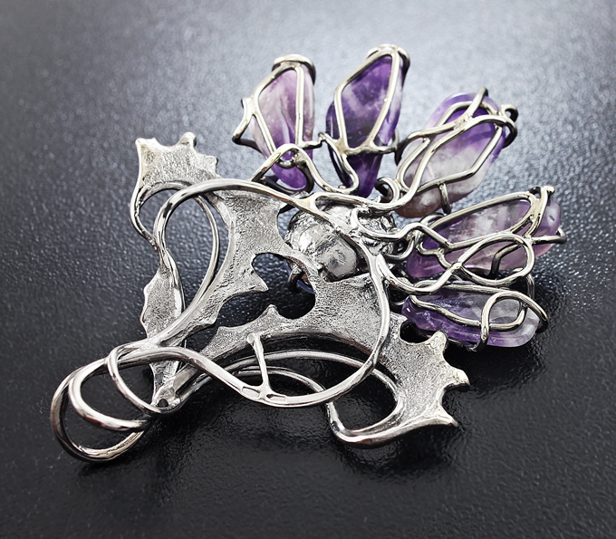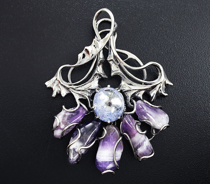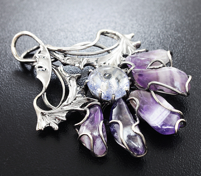 Вашему вниманию предлагается кулон из стерлингового серебра (925 проба) с дьюмортеьеритом и аметистами! Изделие с чернением. Размеры вставок от 12 х 9 мм до 18 х 6 мм. Площадка кулона 64 х 49 мм. Вес изделия 20,2 г.