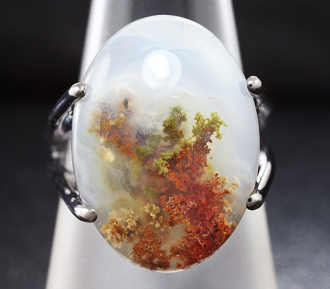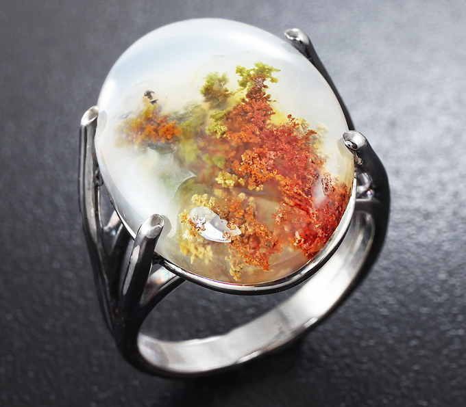 Вашему вниманию предлагается кольцо из стерлингового серебра (925 проба) c дендритическим агатом! Изделие с чернением. Площадка 21 х 17 мм, высота 8 мм. Вес изделия 6,4 г. Размер 17,75. Ниже приводятся ювелирные характеристики вставки.