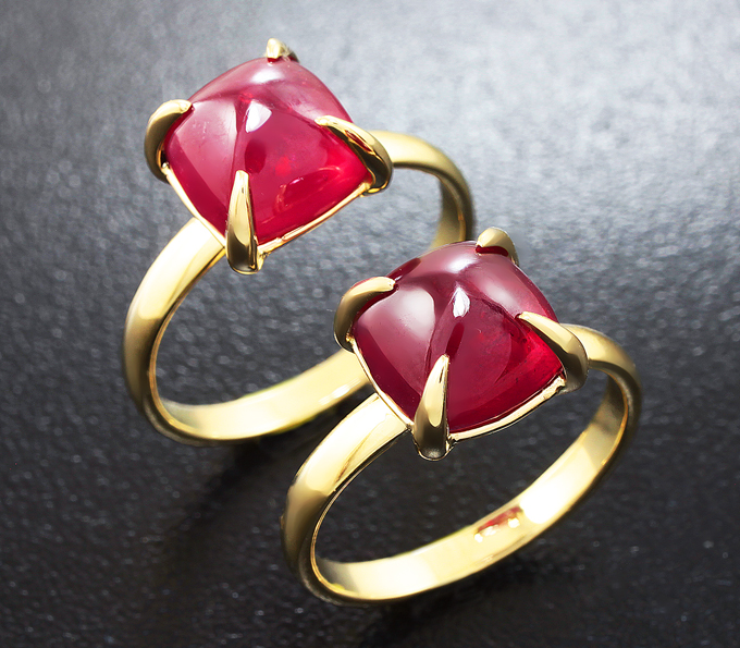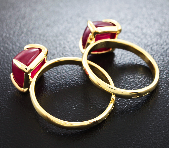 Вашему вниманию предлагается два кольца из желтого золота 585 пробы с рубинами! Площадка 9 х 9 мм, высота 8 мм. Общий вес колец 6 г. Размер 16 и 17. Ниже приводятся ювелирные характеристики вставок.