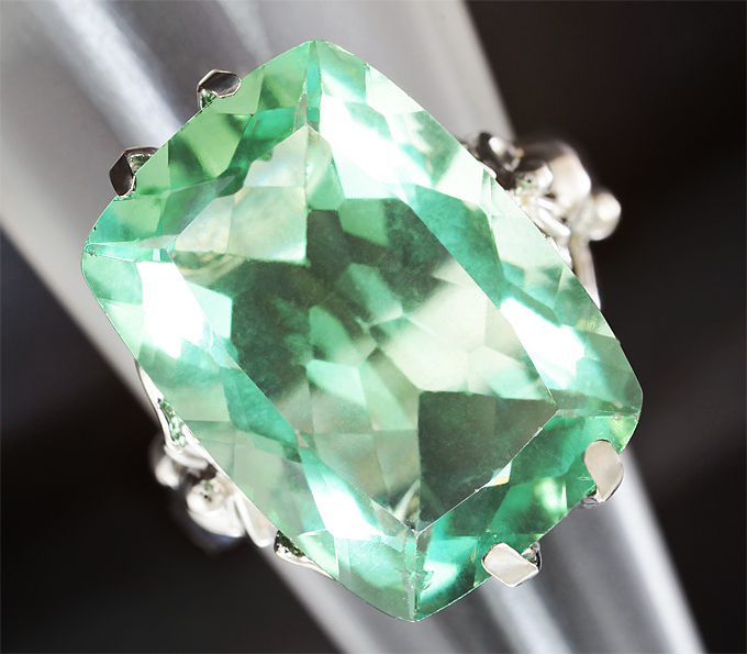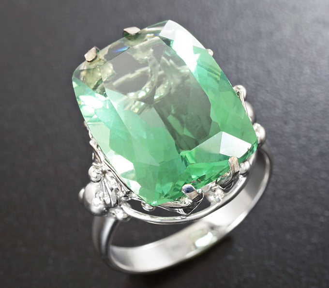 Вашему вниманию предлагается кольцо из белого золота 585 пробы с флюоритом массой 14,6 карат! Размеры вставки 18 х 13 мм. Площадка 19 х 17 мм, высота 12 мм. Вес изделия 8,2 г. Размер 18,5.