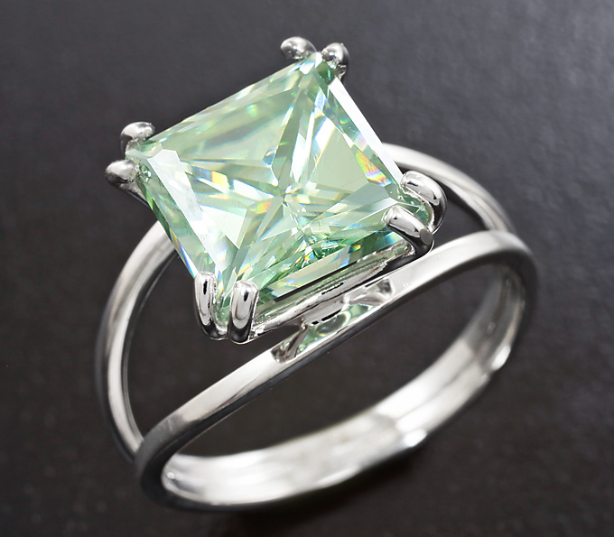 Вашему вниманию предлагается кольцо из белого золота 585 пробы c зеленым муассанитом! Площадка 11 х 11 мм, высота 7 мм. Вес изделия 3,1 г. Размер 16,5. Ниже приводятся ювелирные характеристики вставки.