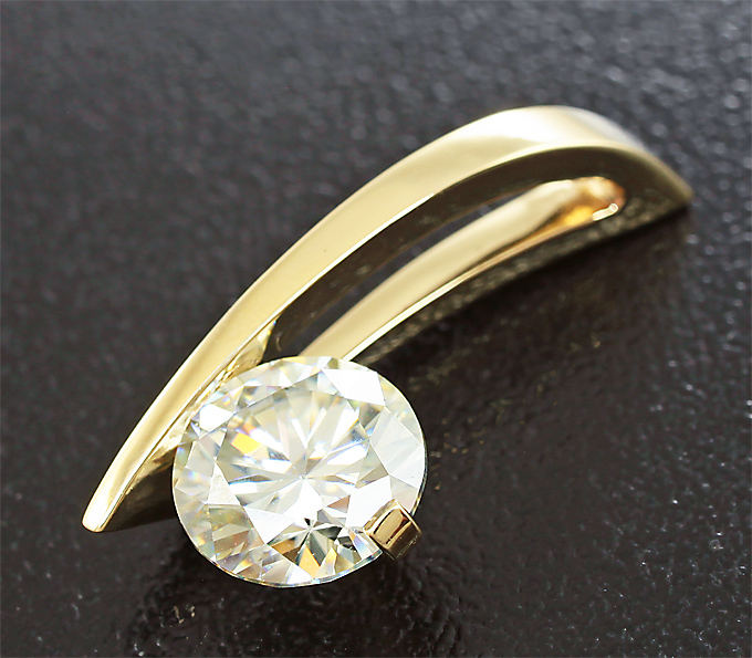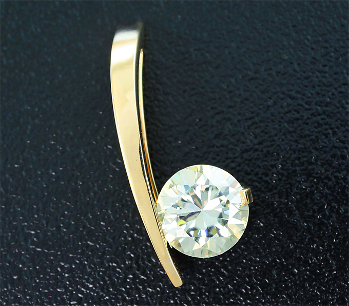 Вашему вниманию предлагается кулон из желтого золота 585 пробы с муассанитом! Площадка кулона 23 х 9 мм. Вес изделия 1,8 г. Ниже приводятся ювелирные характеристики вставки.