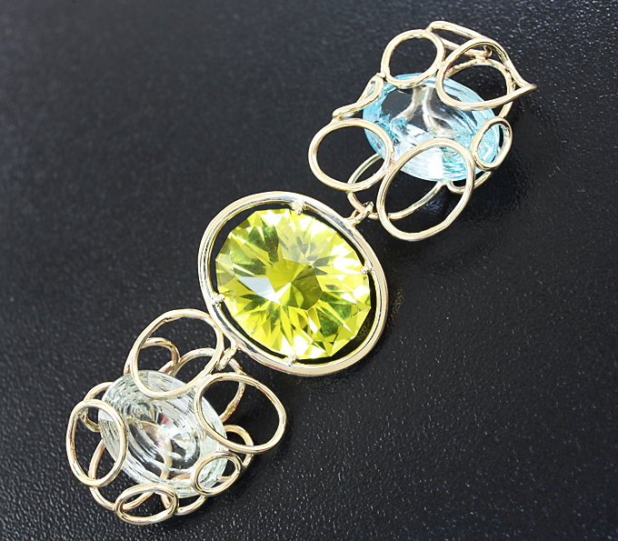 Кулон с топазом, зеленым аметистом и лимонным кварцем авторской огранки
