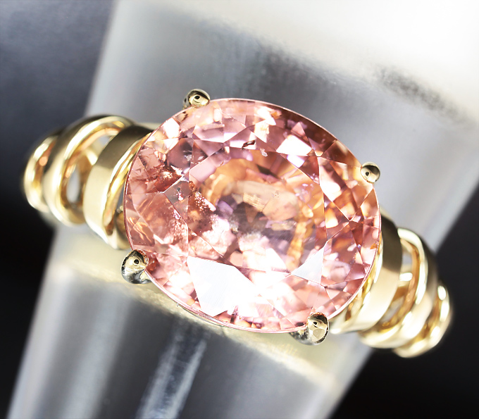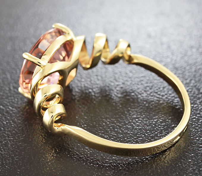 Вашему вниманию предлагается кольцо из желтого золота 585 пробы с турмалином падпараджа! Площадка 24 х 11 мм, высота 8 мм. Вес изделия 5 г. Размер 20. Ниже приводятся ювелирные характеристики вставки.
