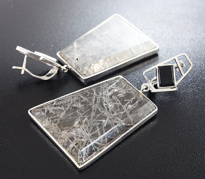 Серьги, инкрустированные кварцем с джемсонитом и черным ониксом