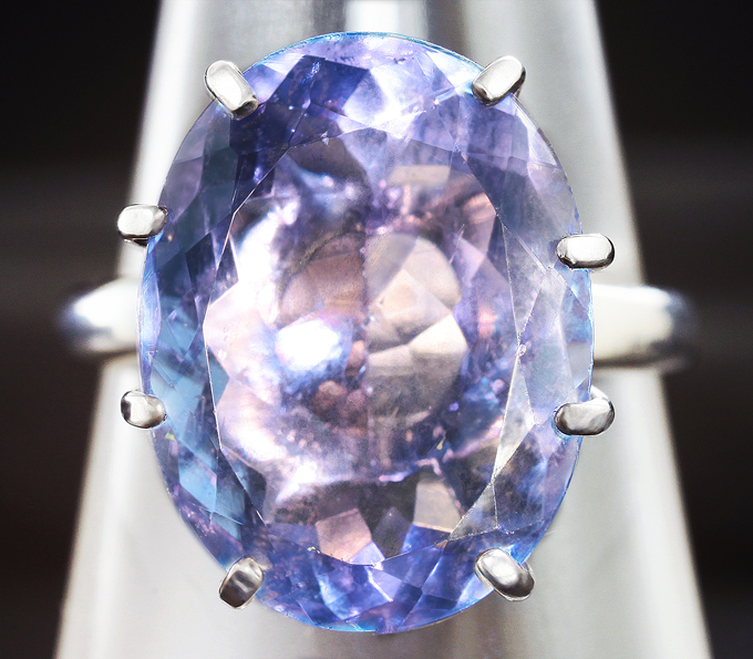 Вашему вниманию предлагается кольцо из стерлингового серебра (925 проба) c флюоритом! При смене освещения, камень меняет цвет с синего на фиолетовый. Площадка 18 х 14 мм, высота 10 мм. Вес изделия 5,5 г. Размер 17,25. Ниже приводятся ювелирные характеристики вставки.