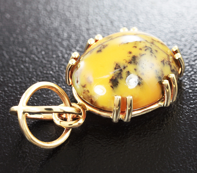 Вашему вниманию предлагается кулон из желтого золота 585 пробы с дендритическим опалом массой 9,36 карат! Размеры вставок 16,6 х 13,6 х 7,3 мм. Размеры кулона с петлей 29 х 16 мм. Вес изделия 3,5 г