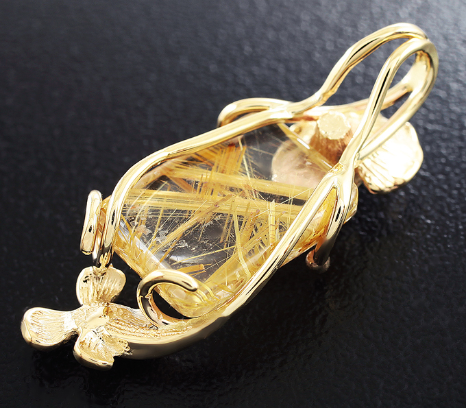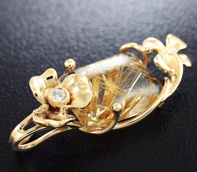 Вашему вниманию предлагается кулон из желтого золота 585 пробы с рутиловым кварцем 5,65 карат и лейкосапфирами! Диаметр сапфиров 2 мм. Площадка кулона 31 х 12 мм. Вес изделия 3,4 г. Ниже приводятся ювелирные характеристики кварца.