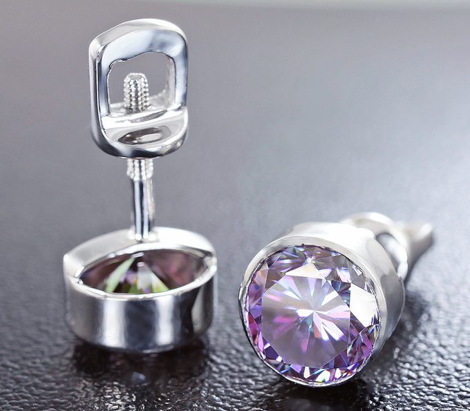 Вашему вниманию предлагаются серьги из белого золота 585 пробы с розовыми муассанитами! Площадка пусет 8 х 8 мм. Вес пары 2,8 г. Ниже приводятся ювелирные характеристики вставок.