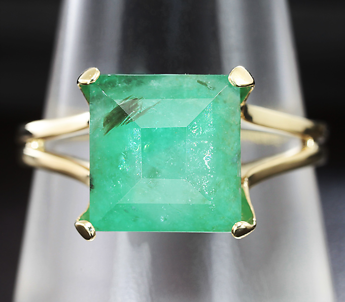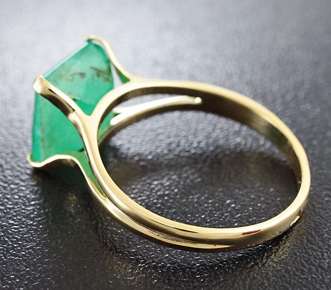 Вашему вниманию предлагается кольцо из желтого золота 585 пробы с уральским изумрудом! Площадка 11 х 11 мм, высота 8 мм. Вес изделия 3,5 г. Размер 19,5. Ниже приводятся ювелирные характеристики вставки.