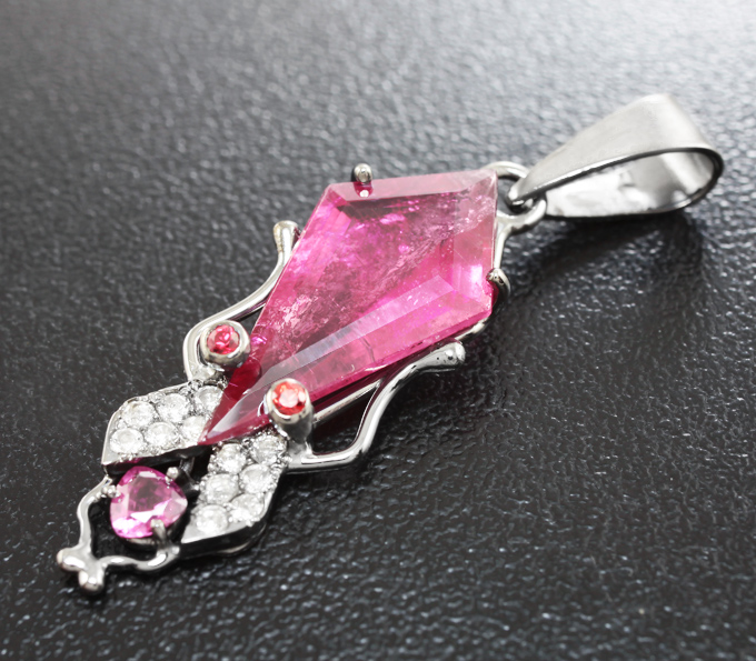 Кулон с рубеллитом турмалином, красными и бесцветными сапфирами
