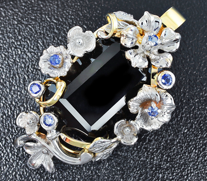 Кулон с шерлом и синими сапфирами