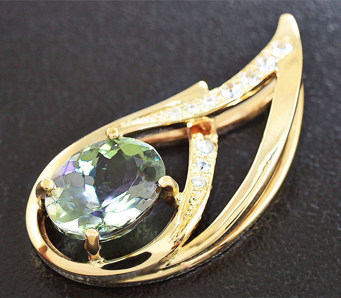 Вашему вниманию предлагается кулон из желтого золота 585 пробы с полихромным танзанитом и лейкосапфирами! Диаметр дополнительной инкрустации от 1 мм до 1,5 мм. Площадка кулона 27 х 13 мм, Вес изделия 3,1 г. Ниже приводятся ювелирные характеристики танзанита.