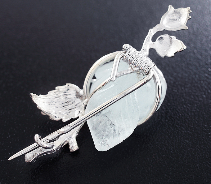 Вашему вниманию предлагается брошь из стерлингового серебра (925 проба) с резным аквамарином! Площадка изделия 37 х 16 мм. Вес 5,5 г. Ниже приводятся ювелирные характеристики вставки.
