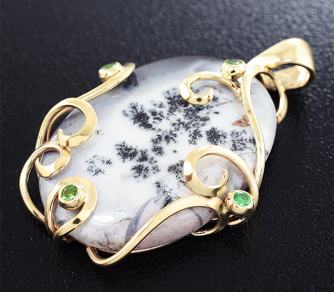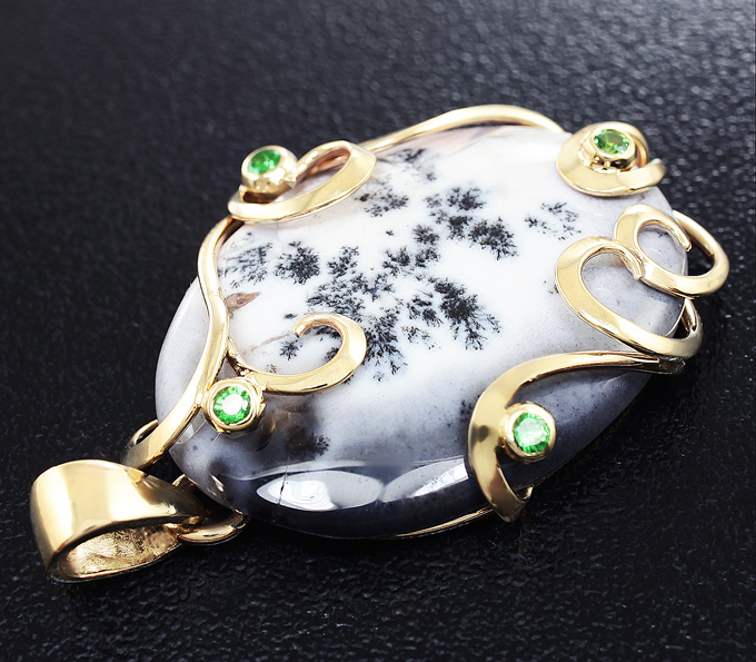 Кулон с дендритическим агатом и цаворитами гранатами