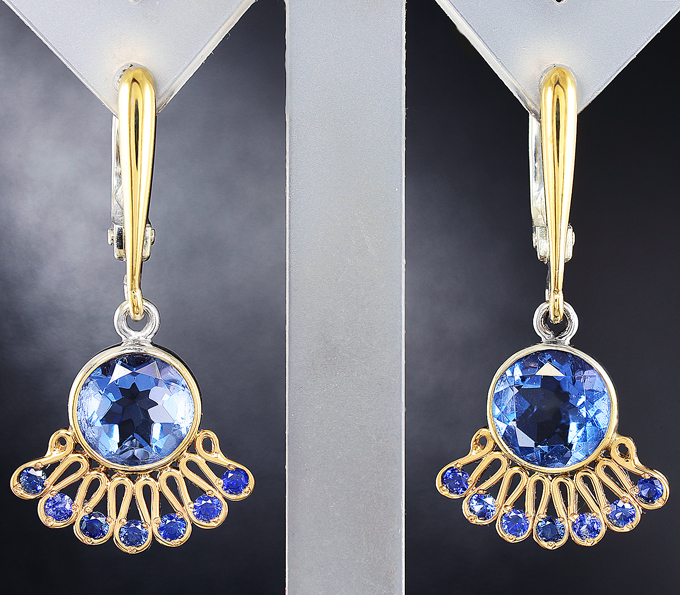 Серьги с флюоритами и синими сапфирами