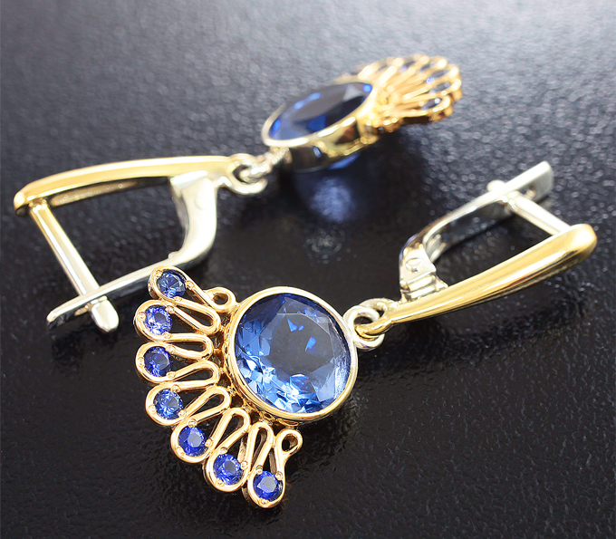 Вашему вниманию предлагаются серьги из стерлингового серебра (925 проба) с флюоритами и синими сапфирами! Изделие частично позолочено. При смене освещения камни меняют цвет с синего на фиолетовый. Диаметр дополнительной инкрустации 2 мм. Размеры серег с петлей 32 х 23 мм. Вес пары 4,4 г. Ниже приводятся ювелирные характеристики флюоритов.