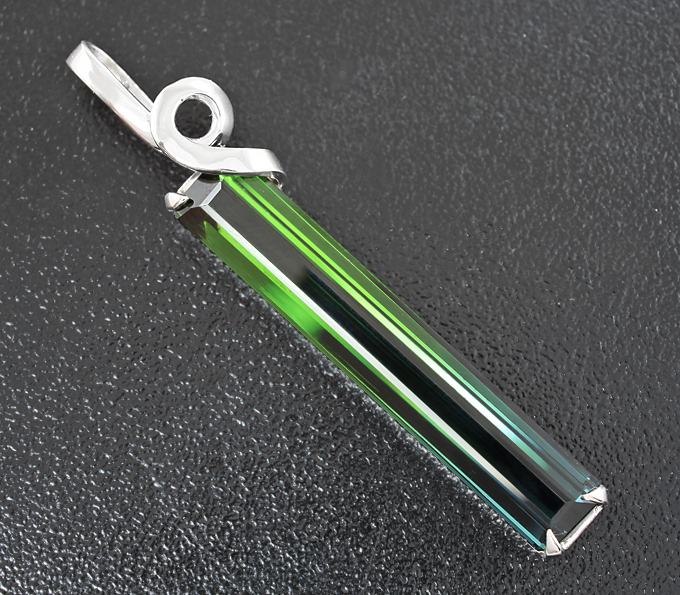 Вашему вниманию предлагается кулон из белого золота 585 пробы с крупным полихромным турмалином! Размеры кулона с петлей 48 х 9 мм. Вес изделия 4,3 г. Ниже приводятся ювелирные характеристики вставки.