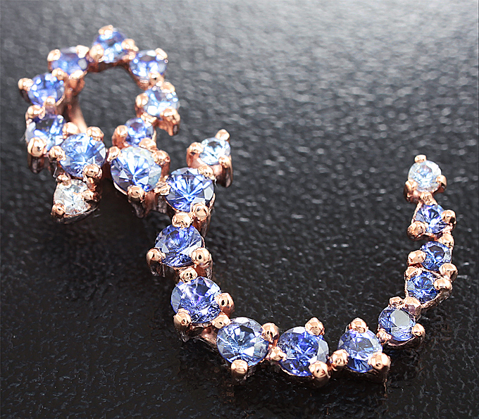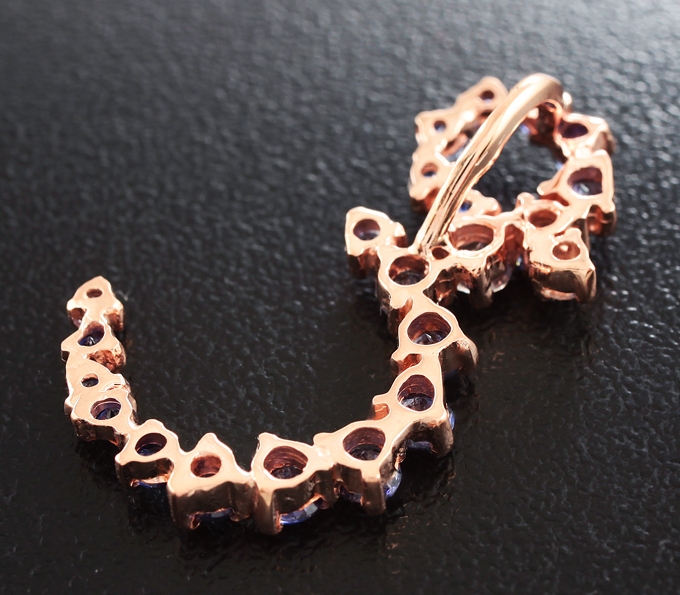 Вашему вниманию предлагается кулон из розового золота 585 пробы с бенитоитами! Диаметр вставок от 1,7 мм до 2,7 мм. Площадка кулона 26 х 8 мм. Вес изделия 1,71 г.