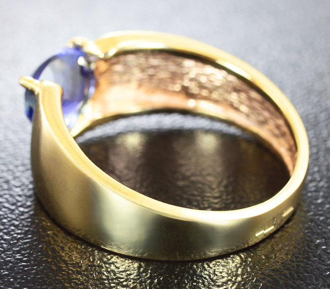 Вашему вниманию предлагается кольцо из желтого золота 585 пробы с танзанитом! Ширина площадки 8 мм, высота 4 мм. Вес изделия 3,95 г. Размер 16,5. Ниже приводятся ювелирные характеристики вставки.