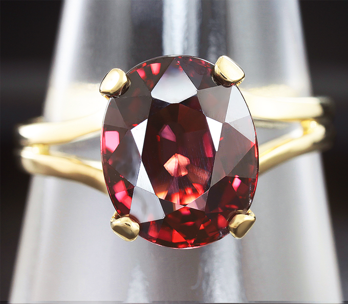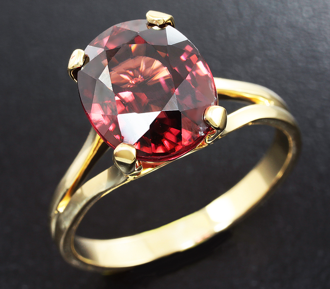 Вашему вниманию предлагается кольцо из желтого золота 585 пробы с крупным красным цирконом! Площадка 10 х 9 мм, высота 8 мм. Вес изделия 3,8 г. Размер 18. Ниже приводятся ювелирные характеристики вставки.