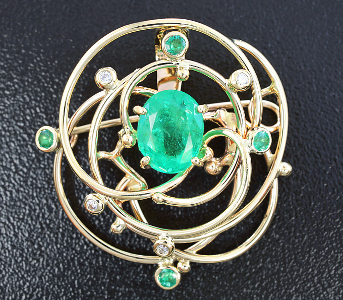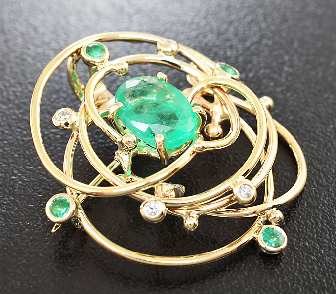 Брошь/кулон с изумрудами и бриллиантами